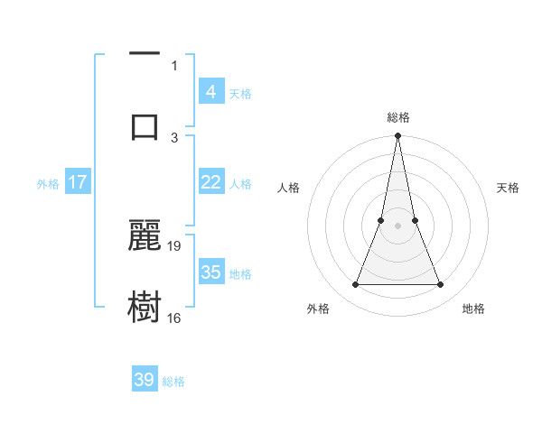 一口 麗樹さんの総格は39画の5点!