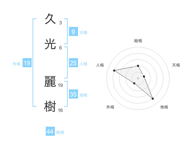 久光 麗樹さんの地格は35画の4点!