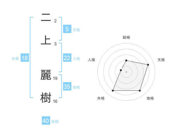 二上 麗樹さんの天格は5画の4点!