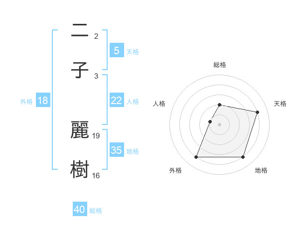 二子 麗樹さんを姓名の画数から五運を鑑定