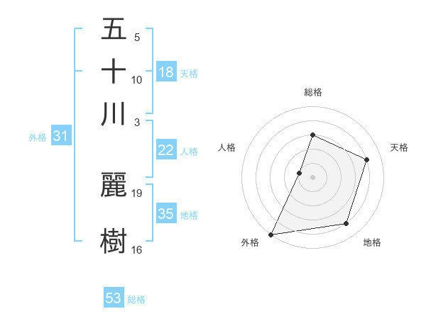 五十川 麗樹さんを姓名の画数から五運を鑑定