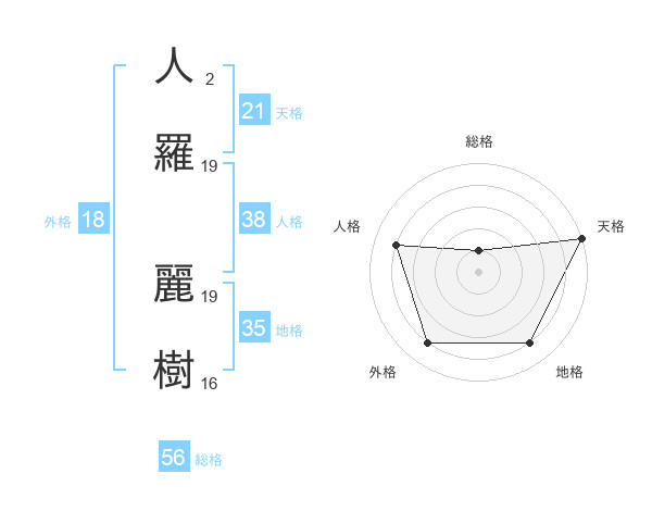 人羅 麗樹さんを姓名の画数から五運を鑑定