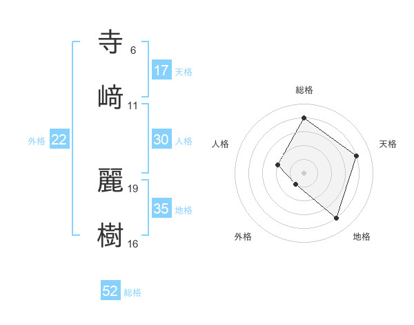 寺﨑 麗樹さんの総格は52画の4点!