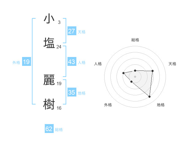 小塩 麗樹さんの総格は62画の1点!