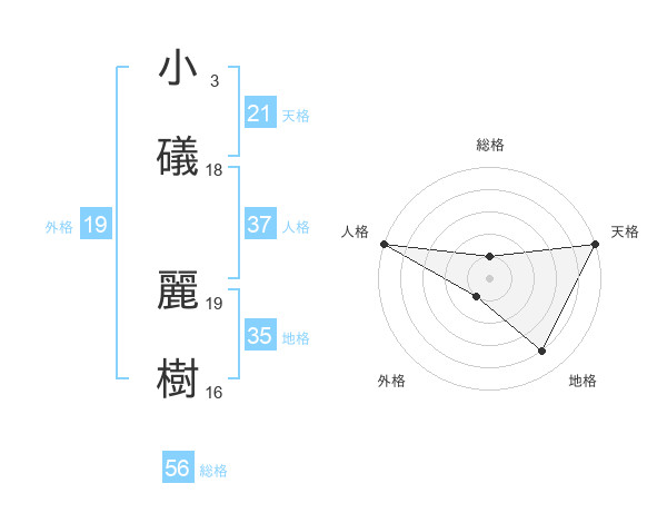 小礒 麗樹さんを姓名の画数から五運を鑑定