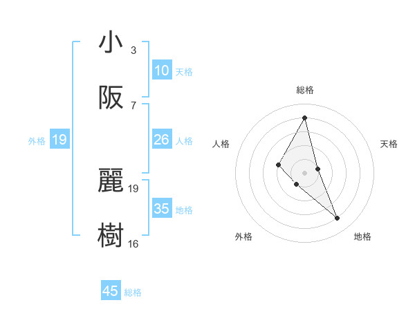 小阪 麗樹さんを姓名の画数から五運を鑑定