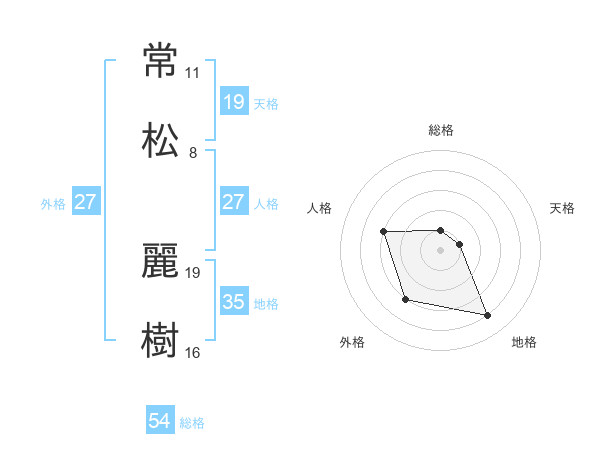 常松 麗樹さんを姓名の画数から五運を鑑定