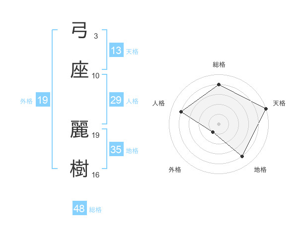 弓座 麗樹さんを姓名の画数から五運を鑑定