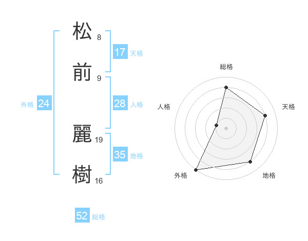 松前 麗樹さんの総格は52画の4点!