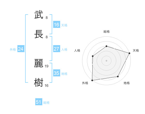 武長 麗樹さんを姓名の画数から五運を鑑定