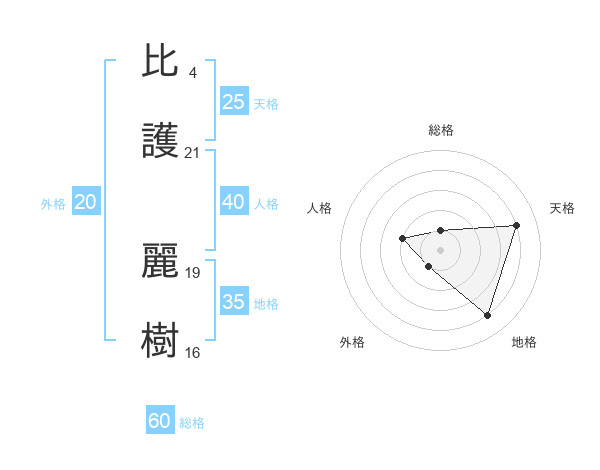 比護 麗樹さんの天格は25画の4点!