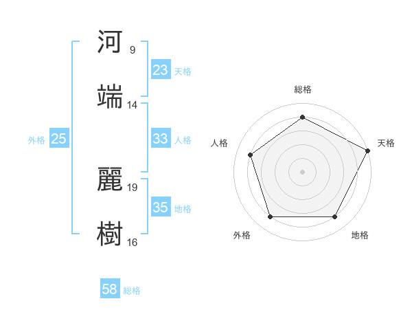 河端 麗樹さんの総格は58画の4点!