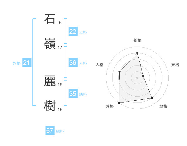 石嶺 麗樹さんを姓名の画数から五運を鑑定