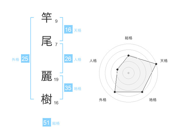 竿尾 麗樹さんの総格は51画の3点!