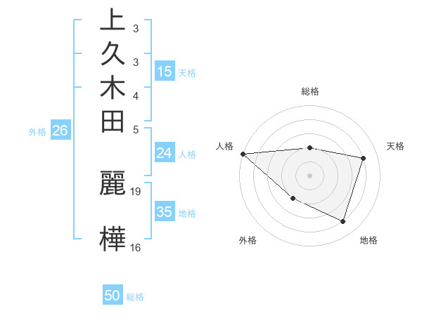 上久木田 麗樺さんを姓名の画数から五運を鑑定