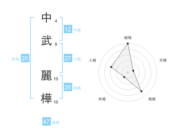 中武 麗樺さんの総格は47画の5点!