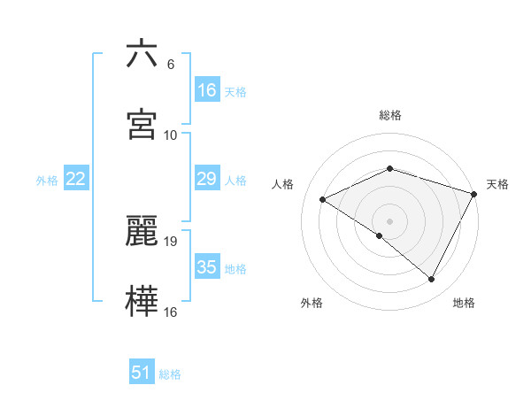 六宮 麗樺さんの総格は51画の3点!