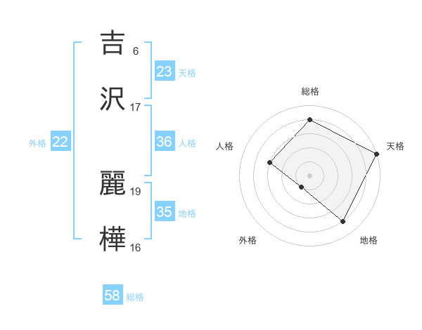 吉沢 麗樺さんの天格は23画の5点!