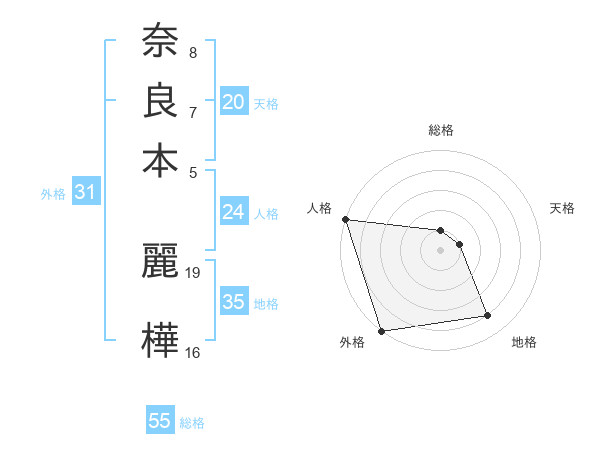 奈良本 麗樺さんを姓名の画数から五運を鑑定