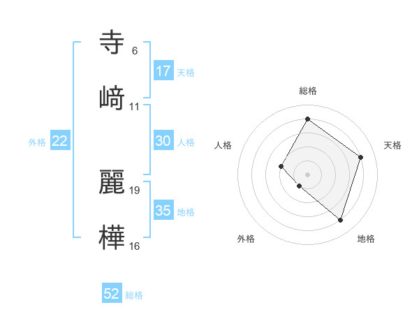 寺﨑 麗樺さんの総格は52画の4点!