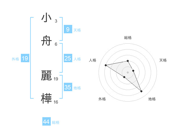 小舟 麗樺さんを姓名の画数から五運を鑑定
