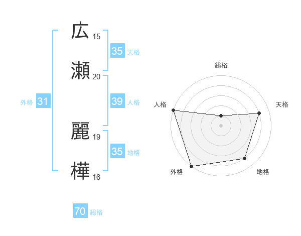 広瀬 麗樺さんの総格は70画の1点!