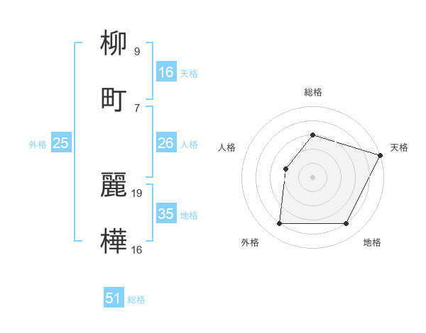 柳町 麗樺さんの天格は16画の5点!