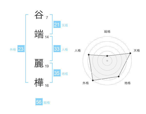 谷端 麗樺さんを姓名の画数から五運を鑑定
