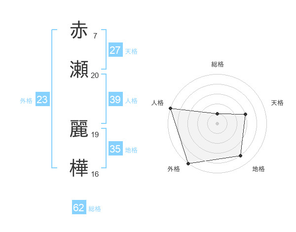 赤瀬 麗樺さんを姓名の画数から五運を鑑定