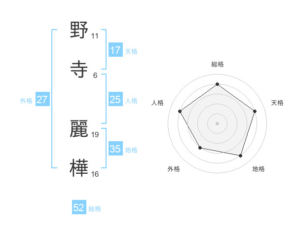 野寺 麗樺さんを姓名の画数から五運を鑑定