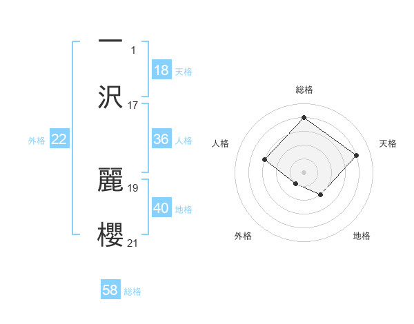 一沢 麗櫻さんを姓名の画数から五運を鑑定