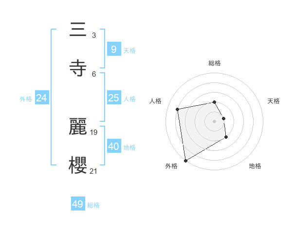 三寺 麗櫻さんを姓名の画数から五運を鑑定