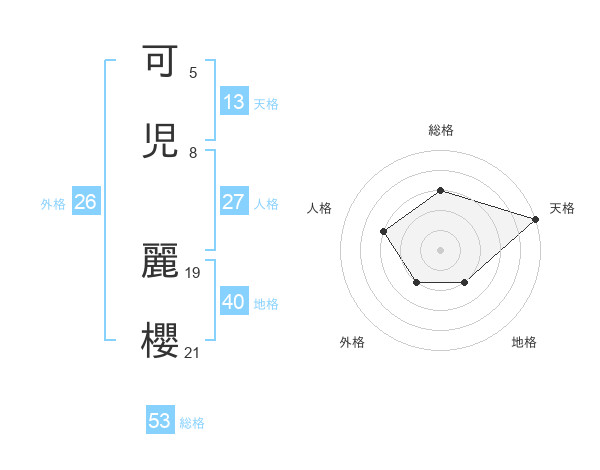 可児 麗櫻さんを姓名の画数から五運を鑑定