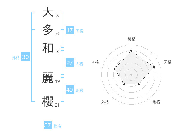 大多和 麗櫻さんを姓名の画数から五運を鑑定