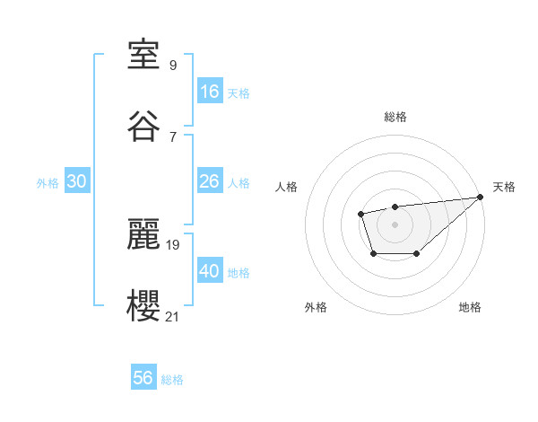 室谷 麗櫻さんを姓名の画数から五運を鑑定