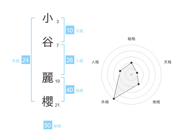 小谷 麗櫻さんを姓名の画数から五運を鑑定