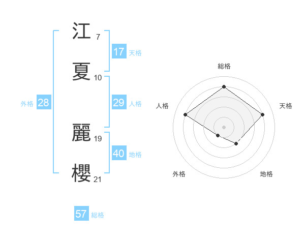 江夏 麗櫻さんの総格は57画の4点!