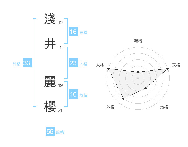 淺井 麗櫻さんの総格は56画の1点!