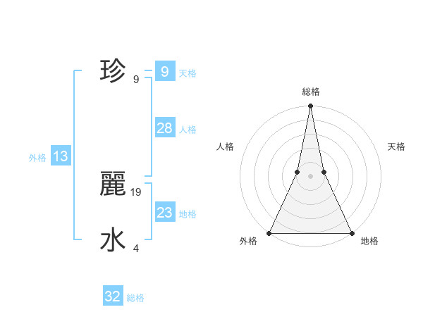 珍 麗水さんの総格は32画の5点!