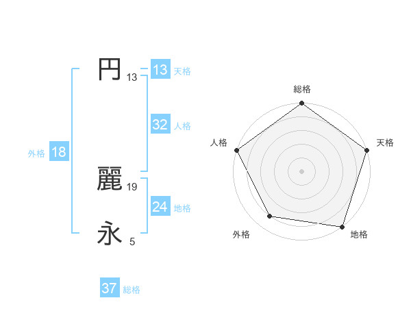 円 麗永さんの天格は13画の5点!