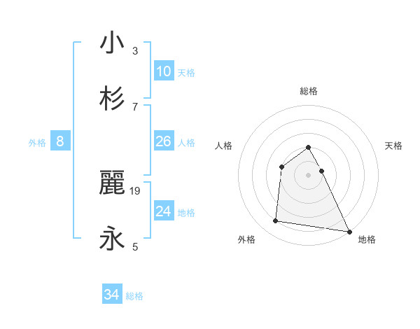 小杉 麗永さんを姓名の画数から五運を鑑定