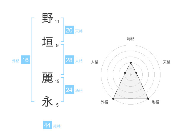 野垣 麗永さんの総格は44画の2点!