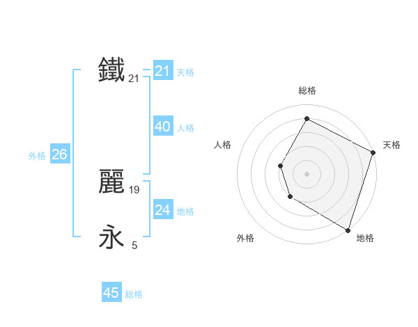 鐵 麗永さんを姓名の画数から五運を鑑定