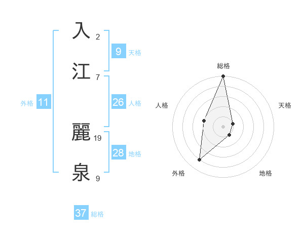 入江 麗泉さんの総格は37画の5点!