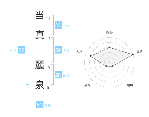 当真 麗泉さんを姓名の画数から五運を鑑定