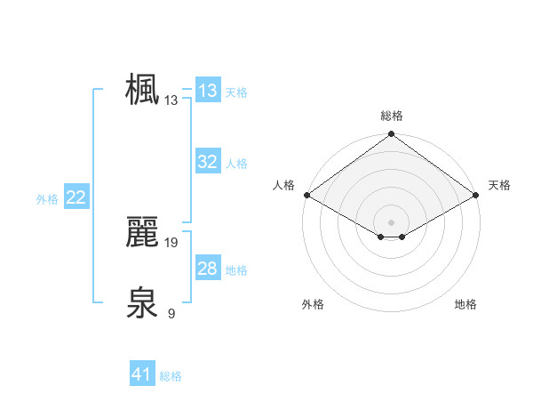 楓 麗泉さんの天格は13画の5点!