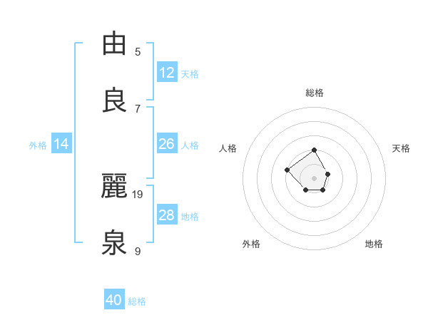 由良 麗泉さんを姓名の画数から五運を鑑定