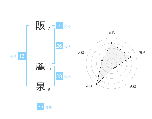 阪 麗泉さんを姓名の画数から五運を鑑定