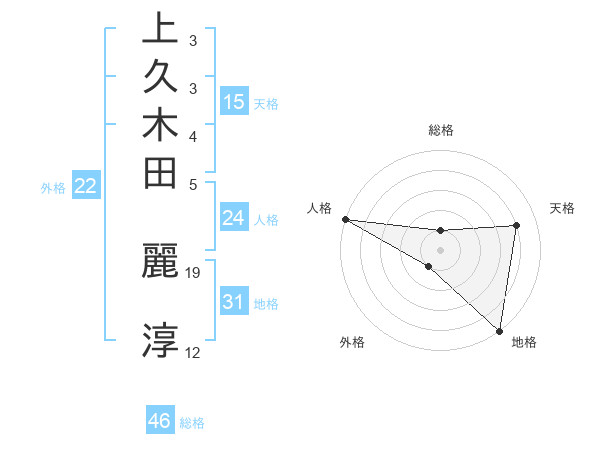 上久木田 麗淳さんの地格は31画の5点!