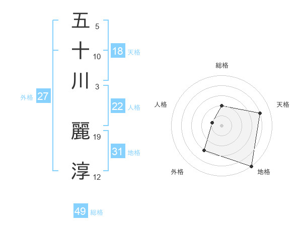 五十川 麗淳さんを姓名の画数から五運を鑑定
